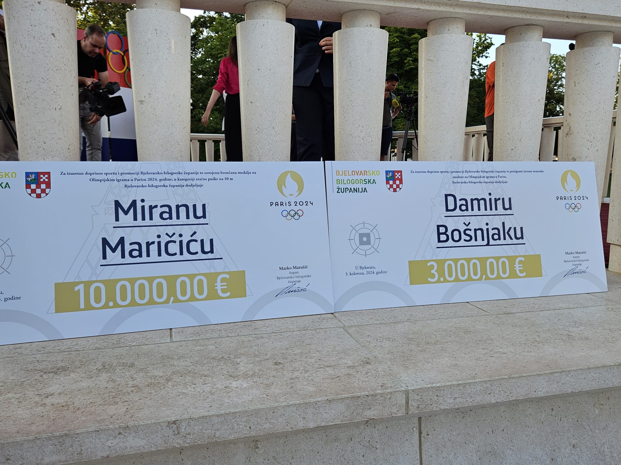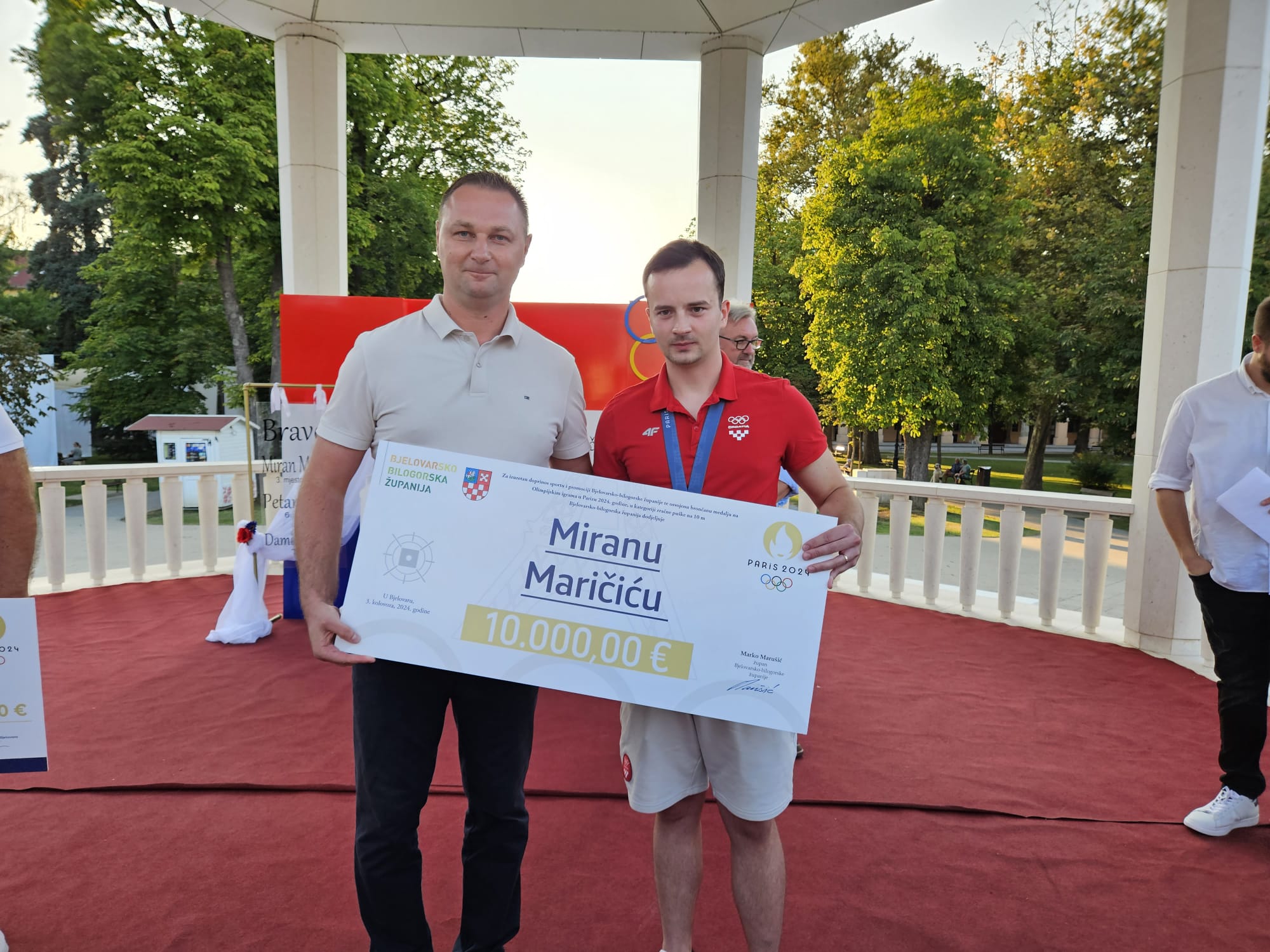 Osim što je primio čestitke gradskih i županijskih čelnika, carice Marije Terezije te brojnih obožavatelja, Miran i njegov trener Damir Bošnjak primili su zaslužene novčane nagrade. Iznose od po 10 tisuća eura za Maričića su pripremili Grad Bjelovar sa Sportskom zajednicom Grada Bjelovara te Bjelovarsko-bilogorska županija sa Sportskom zajednicom Bjelovarsko-bilogorske županije, dok je njegovom treneru Damiru Bošnjaku uručena novčana nagrada u visini od po 3 tisuće eura i s gradske i sa županijske razine.