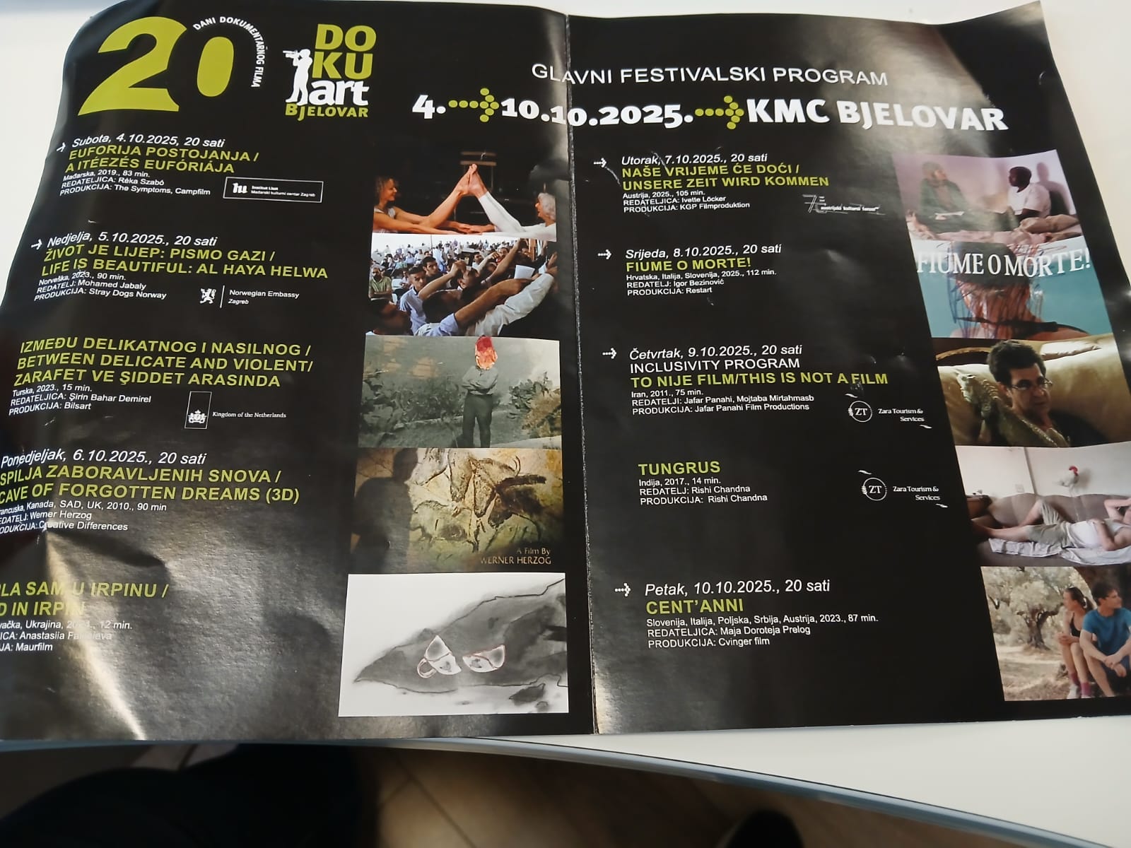 I unatoč tome je snimao. Prikazat će se i 3D dokumentarac Wernera Herzoga o spilji u Francuskoj koja krije tajne života pračovjeka, a iako će se prikazati filmovi koji se dotiču Palestine i Ukrajine zajednička im je nota optimizma i nade. U jubilarnom izdanju Dokuart ide u tri sela i nudi bogat popratni program uključujući onaj uključivosti.