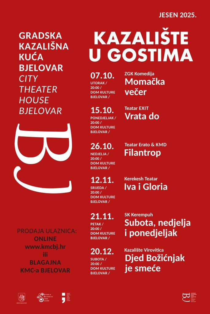 Gradska kazališna kuća Bjelovar pripremila je uzbudljivu kazališnu jesen, koja donosi gostovanja renomiranih kazališta i raznovrsne naslove među kojima će svaki gledatelj pronaći nešto za sebe. Osim prepoznatog programa Kazalište u gostima, kazališna kuća nastavlja i vlastitu produkciju, već u prosincu pripremajući premijerni naslov u samostalnoj izvedbi.