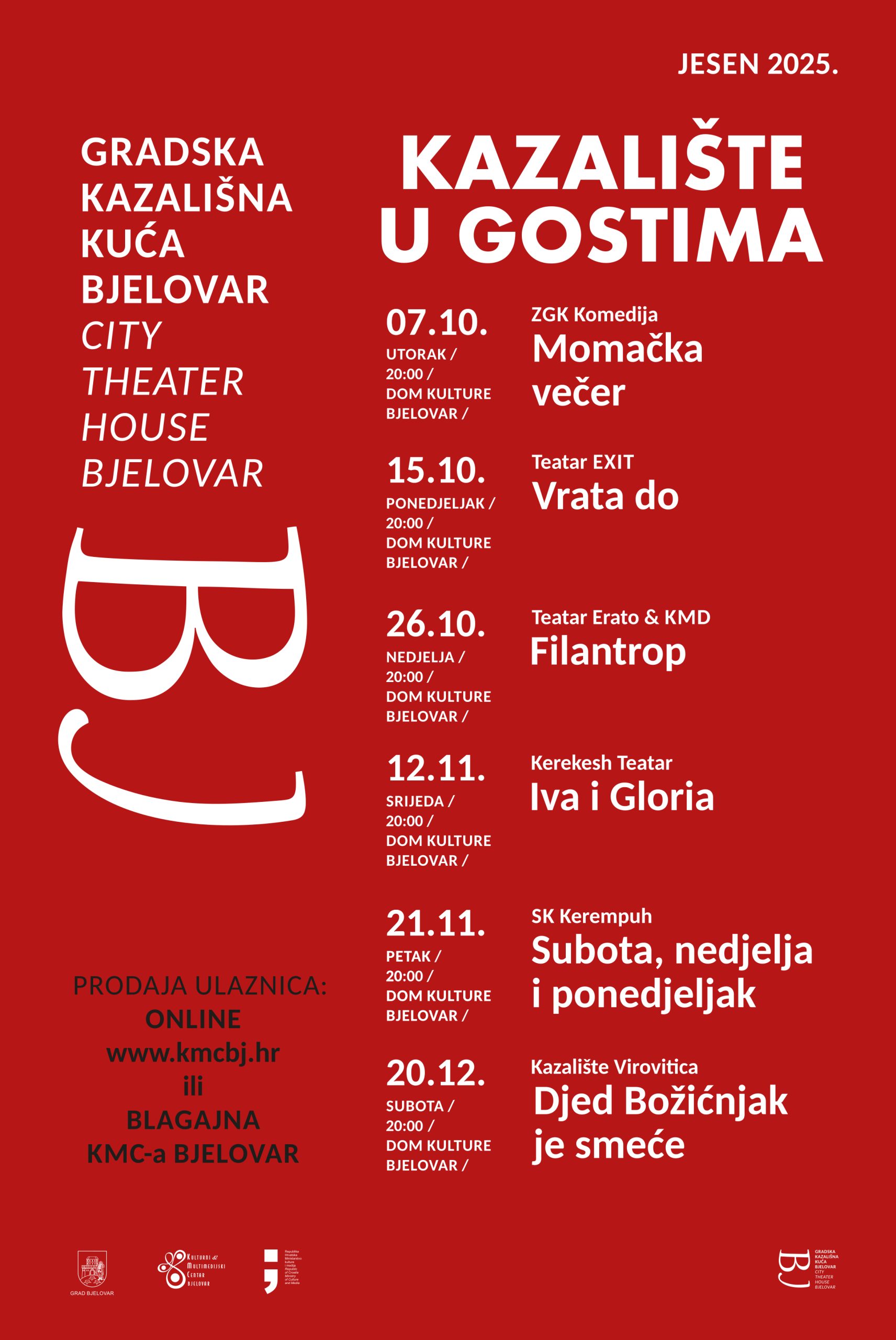 Sezonu otvara hit-komedija zabune Momačka večer, u režiji Slavena Vidakovića. Predstava je pravi festival smijeha i zapleta, a donosi sjajnu glumačku ekipu: Ronalda Žlabura, Igora Mešina, Matiju Kačana, Roka Sikavicu, Taru Taller, Ružicu Maurus i Damira Lončara. Ova energična komedija već je osvojila publiku, a sada će nasmijati i Bjelovarčane.