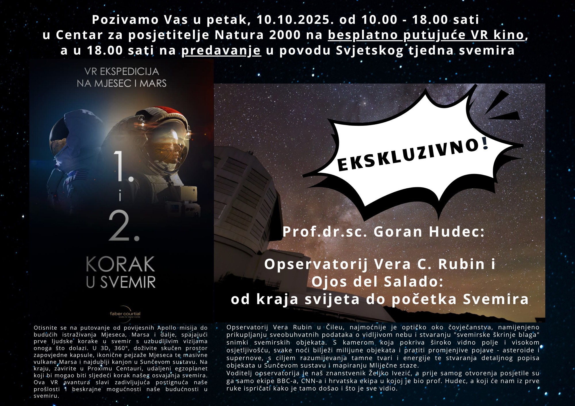 – Profesor Goran Hudetz će održati predavanje o Opservatoriju Vera Rubin koji je otvoren ove godine. On je dobar prijatelj s našim znanstvenikom Željkom Ivezićem, koji je šef Opservatorija koji se nalazi u Čileu. Hudetz je tamo išao pogledati vulkan s ekipom, i budući da poznaju Ivezića, pustili su ih da pogledaju čitav Opservatorij. Prije njih, to su napravile samo ekipe BBC-a i CNN-a – priča Miloš.