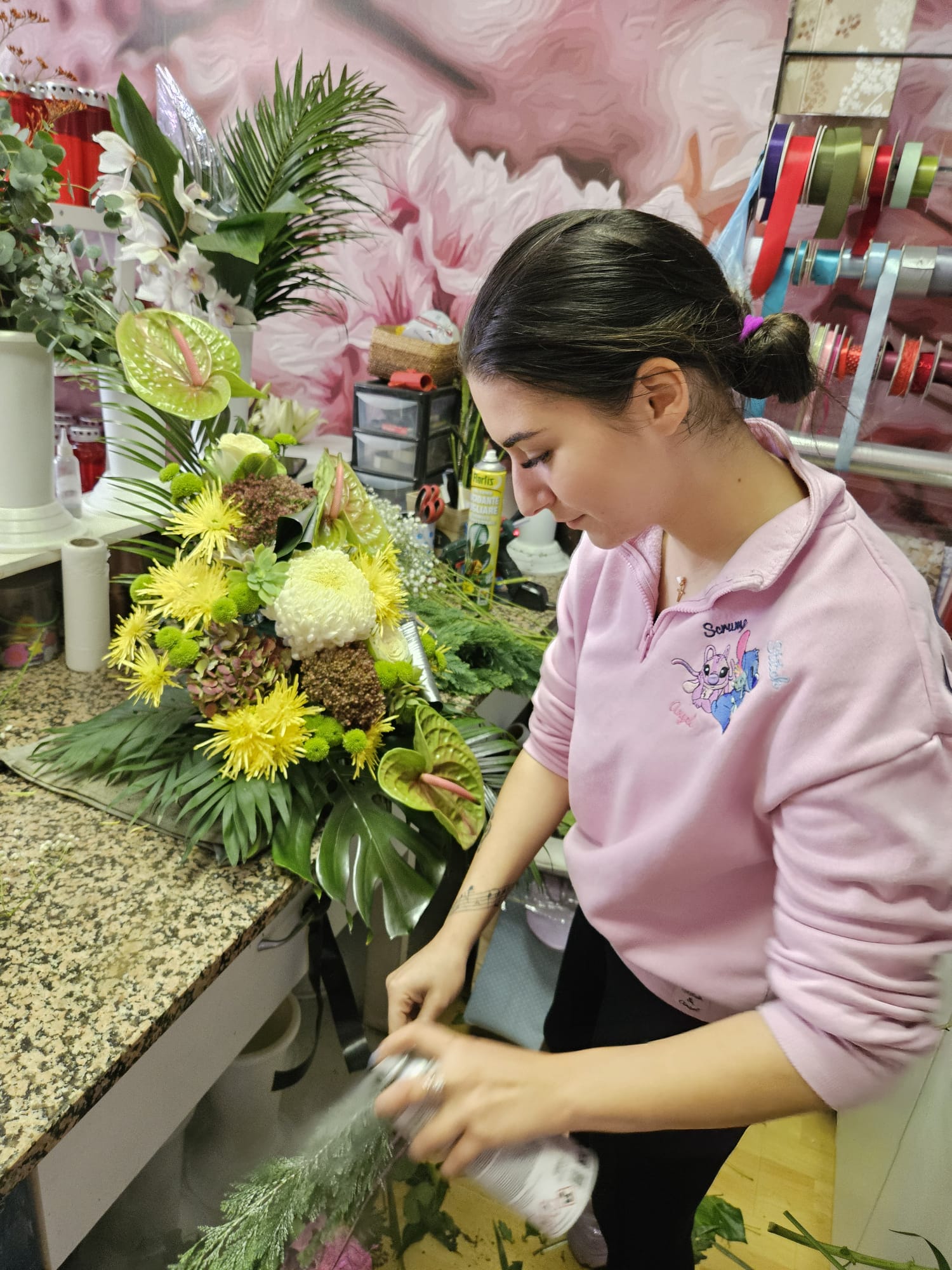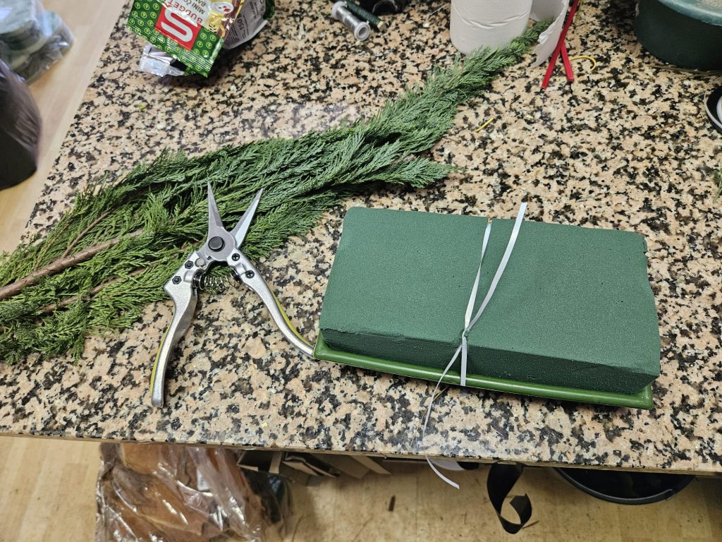 „Prvo namočimo spužvu, što je najbitnija stvar. Zatim je stavimo u plastičnu posudicu, zavežemo špagom ili trakom i pripremimo podlogu od zelenila koja će oblikovati osnovu vijenca. Nakon toga slijedi slaganje cvijeća, režemo cvijeće škarama i postavljamo ga kako želimo – na visoko, na nisko, okruglo, tu ima milijardu kombinacija i može se napraviti stvarno čuda”, pojasnila je Andrijana.