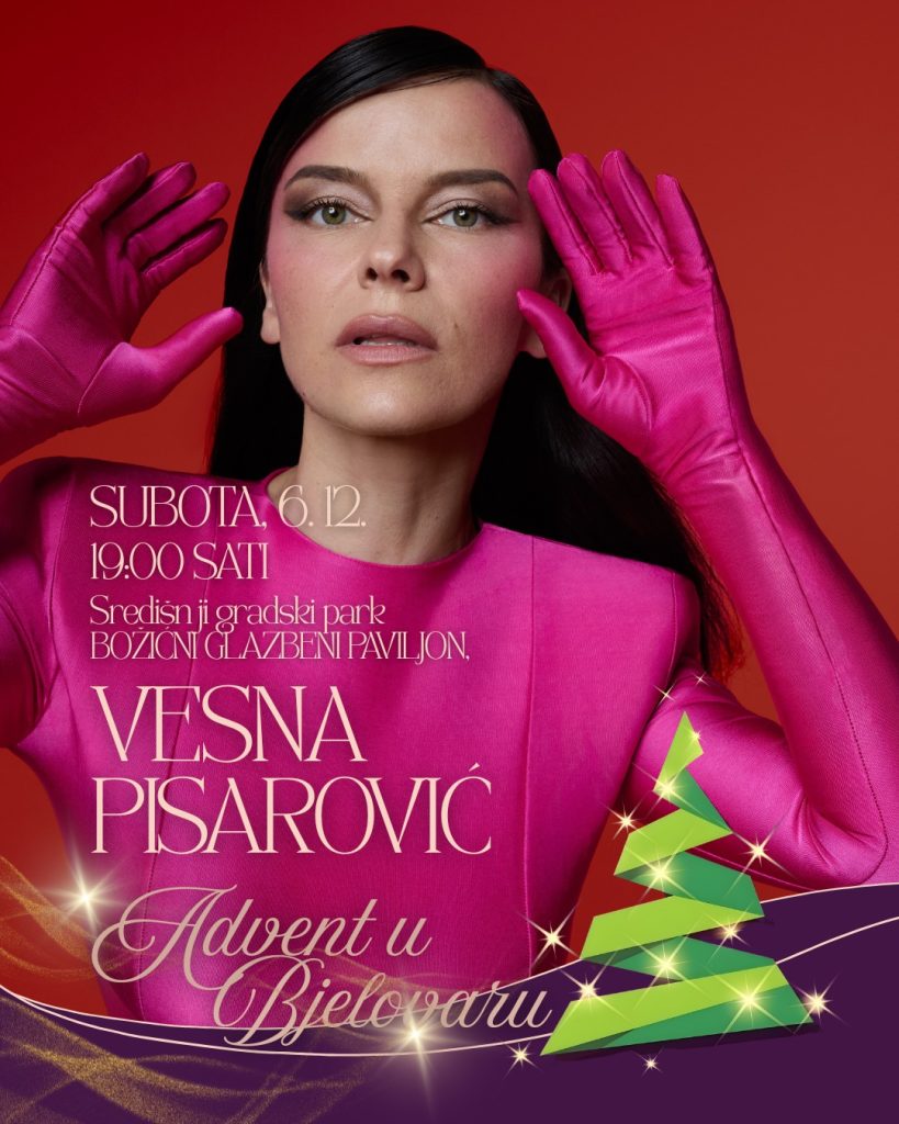 Ovogodišnji Advent u Bjelovaru bit će ispunjen posebnim glazbenim doživljajem. U subotu, 6. prosinca 2025. godine, s početkom u 19 sati, u Božićnom glazbenom paviljonu u središnjem gradskom parku, nastupit će Vesna Pisarović, omiljena hrvatska pjevačica čije su pjesme obilježile brojne generacije.