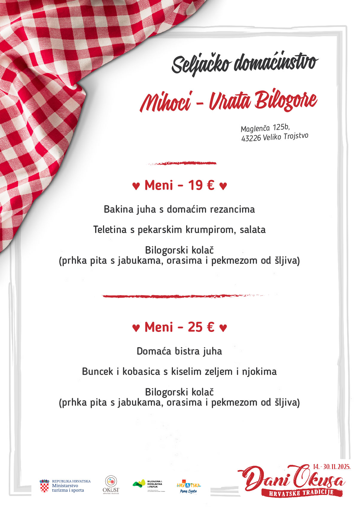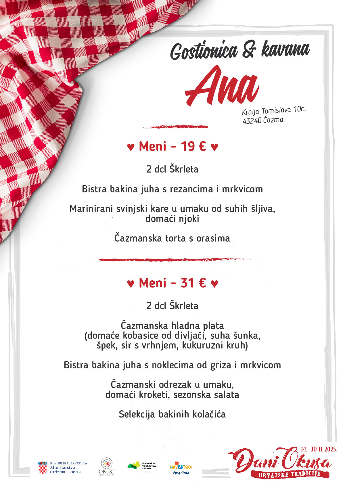 Cijene menija kreću se od 19 do 31 eura, a na svakom stolu očekuje vas prava simfonija domaćih mirisa i okusa, spremljena prema receptima naših baka.