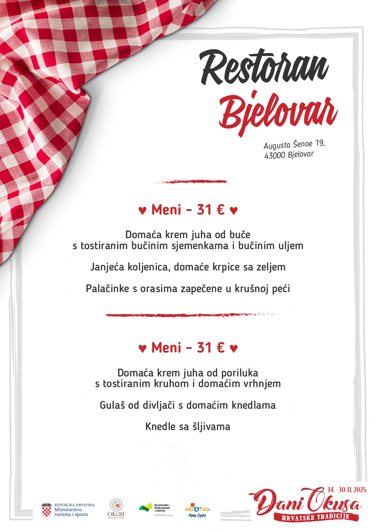 Naime, od 14. do 30. studenoga održavaju se Nacionalni dani okusa hrvatske tradicije – Okusi bjelovarsko-bilogorskog kraja, manifestacija koja okuplja 11 ugostiteljskih objekata s područja županije, nositelja oznake Okusi bjelovarsko-bilogorskog kraja.