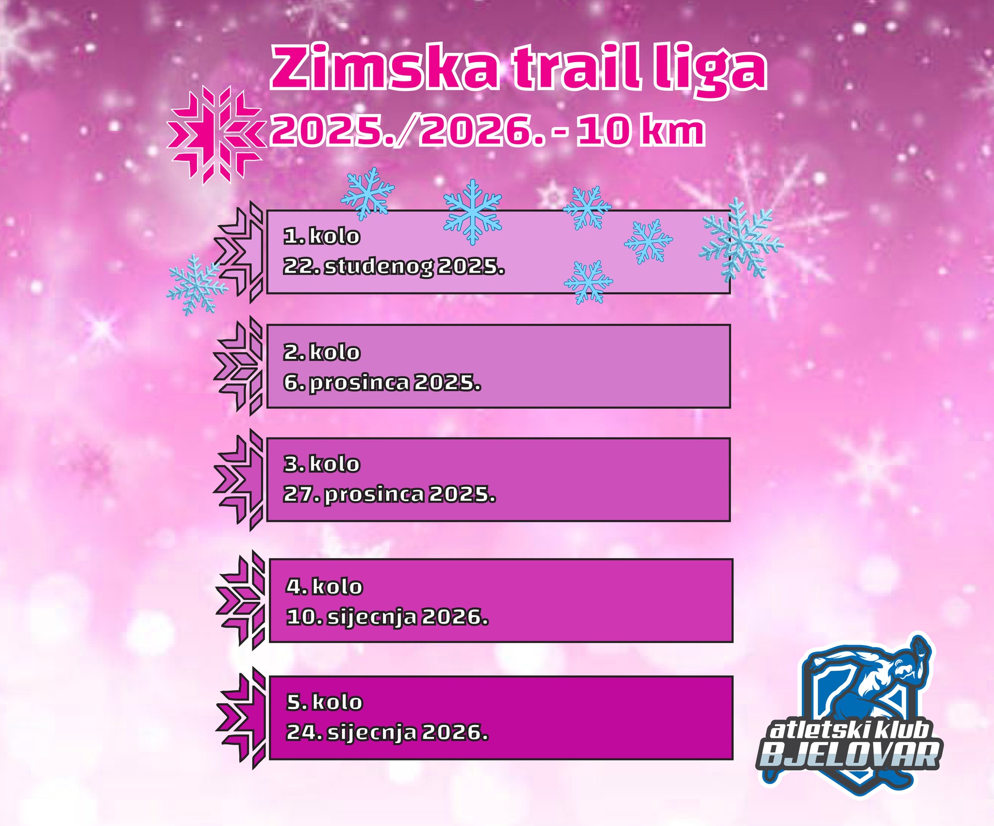 Pripremite tenisice, osmijeh i dobru volju. Naime, 22. studenoga 2025. godine u 10:30 počinje bjelovarska zimska trail liga (njena sezona 2025./2026.). Ovdje zapravo govorimo o najzabavnijoj bilogorskoj zimskoj avanturi s tim da ovaj događaj, slobodno se može kazati spektakl organizira Atletski klub Bjelovar na čijem je čelu Nikola Kovaček.