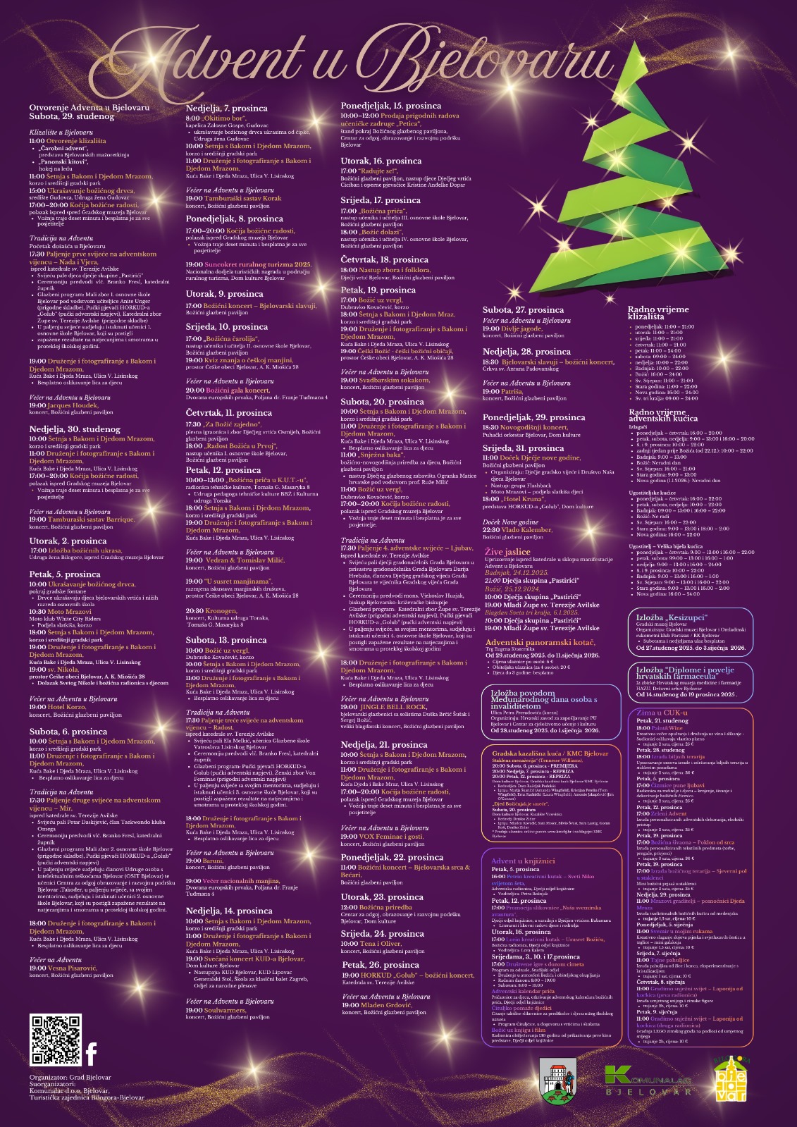 – Kao i svake godine, u suradnji s Bjelovarsko – križevačkom biskupijom, svake će se subote u 18 sati paliti adventska svijeća. Posebno se njeguje i tradicija živih jaslica, koje će biti postavljene na Badnjak, Božić te na blagdan Sveta tri kralja. Advent u Bjelovaru donosi i niz glazbenih događanja, rekao je Igor Brajdić, zamjenik bjelovarskog gradonačelnika.
