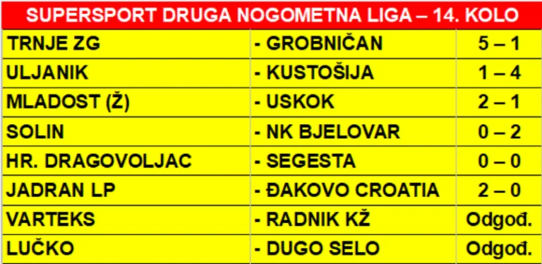 SUPERSPORT DRUGA HRVATSKA NOGOMETNA LIGA – 14. KOLO SEZONE 2025./2026.: