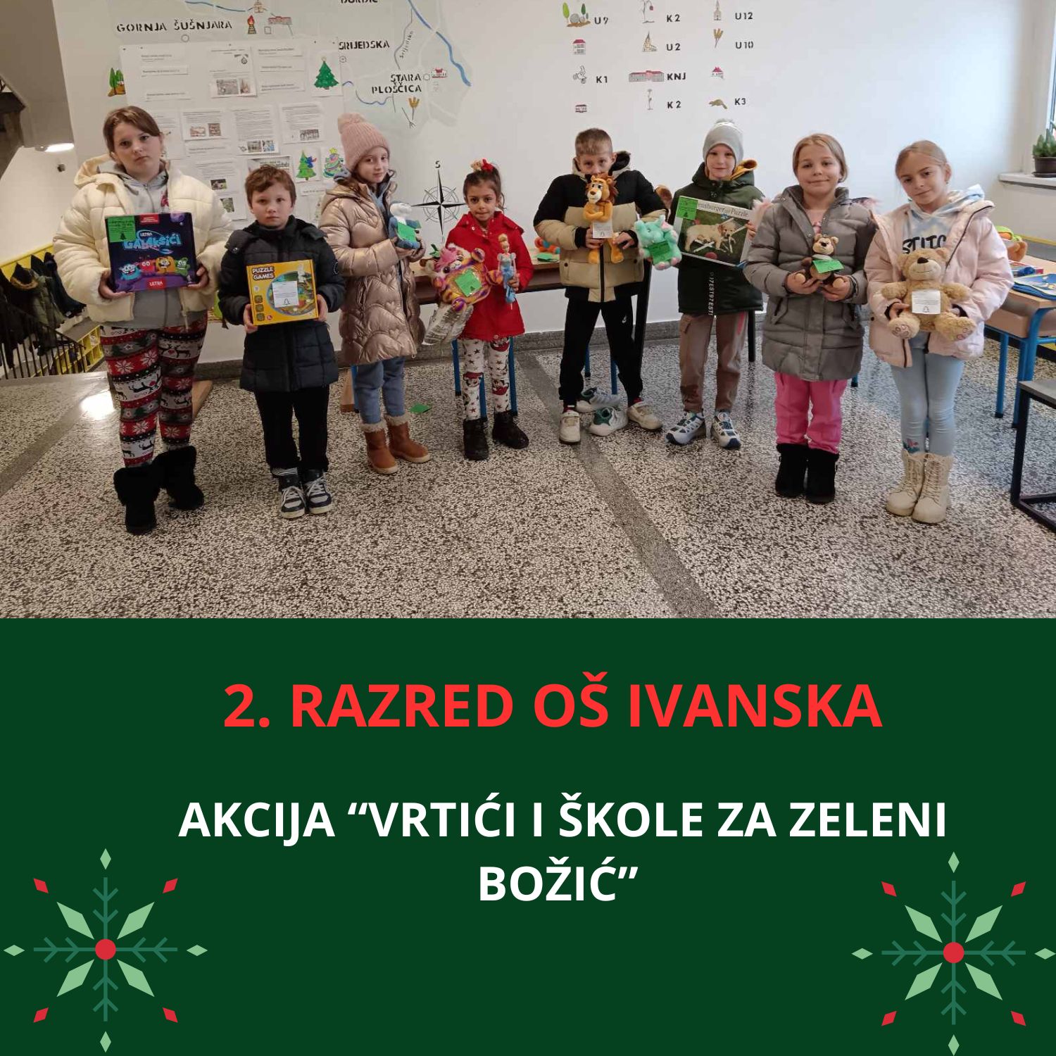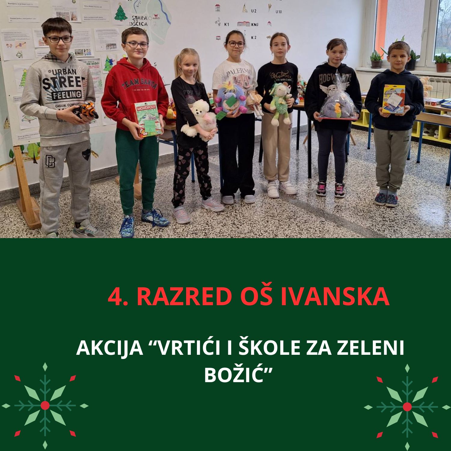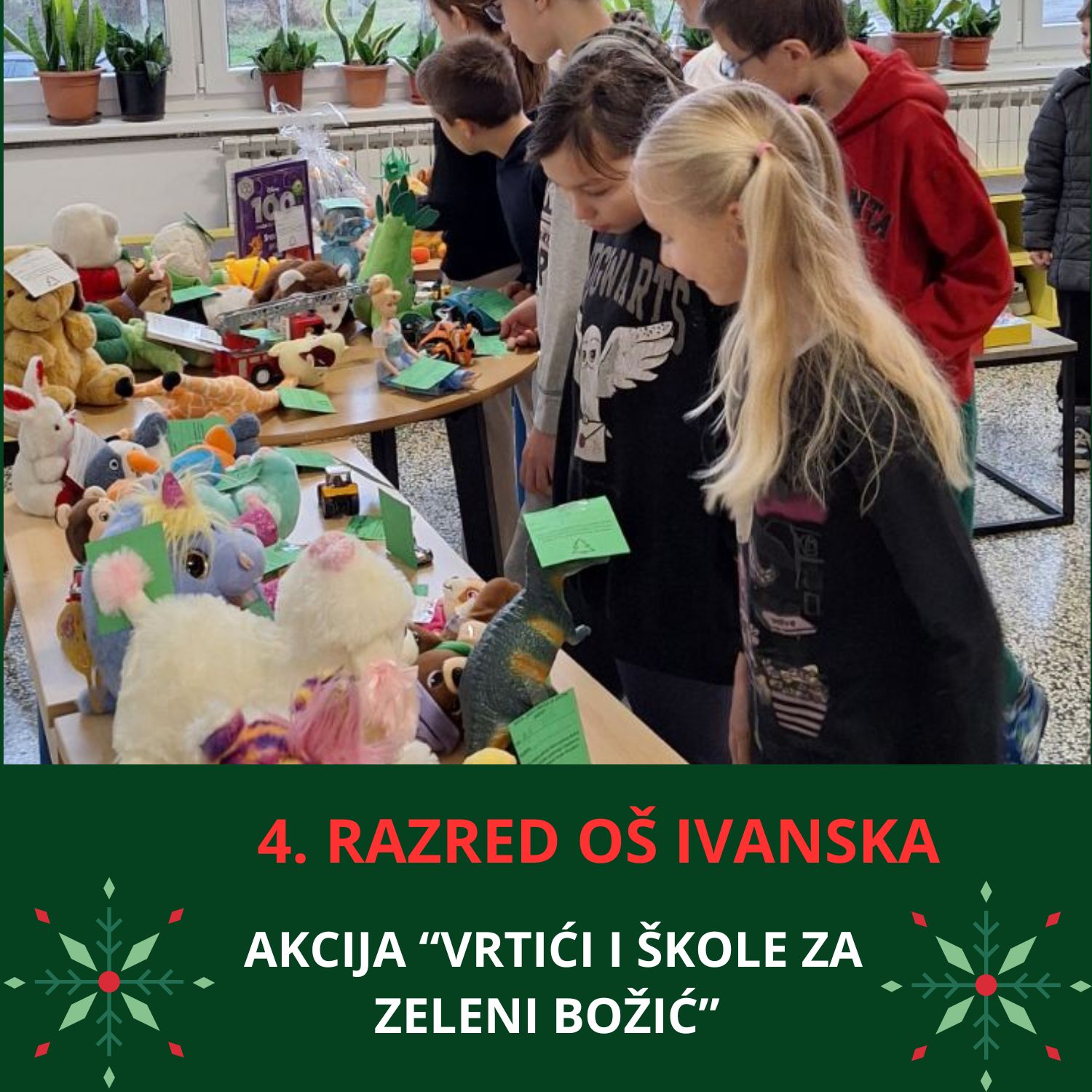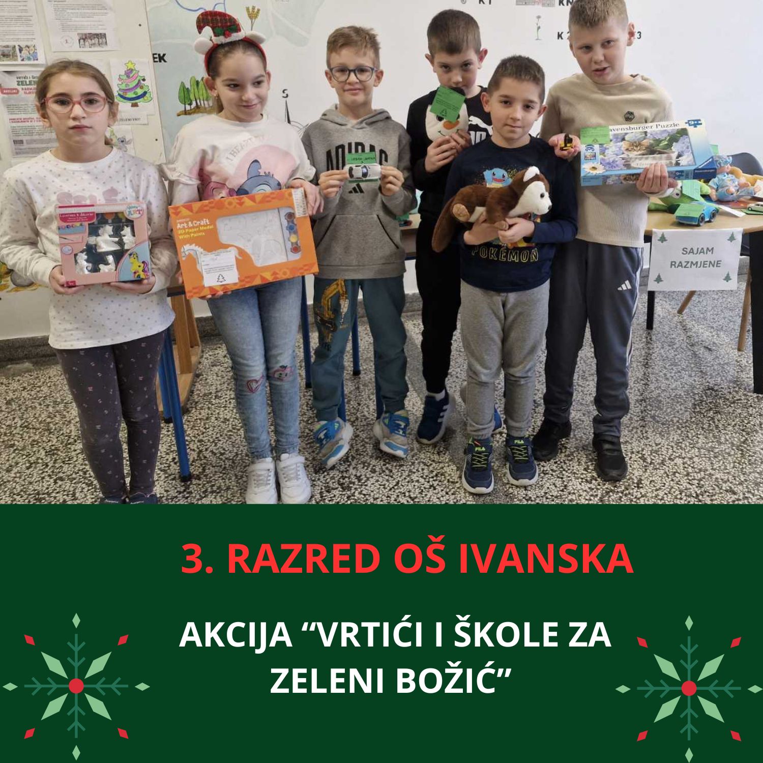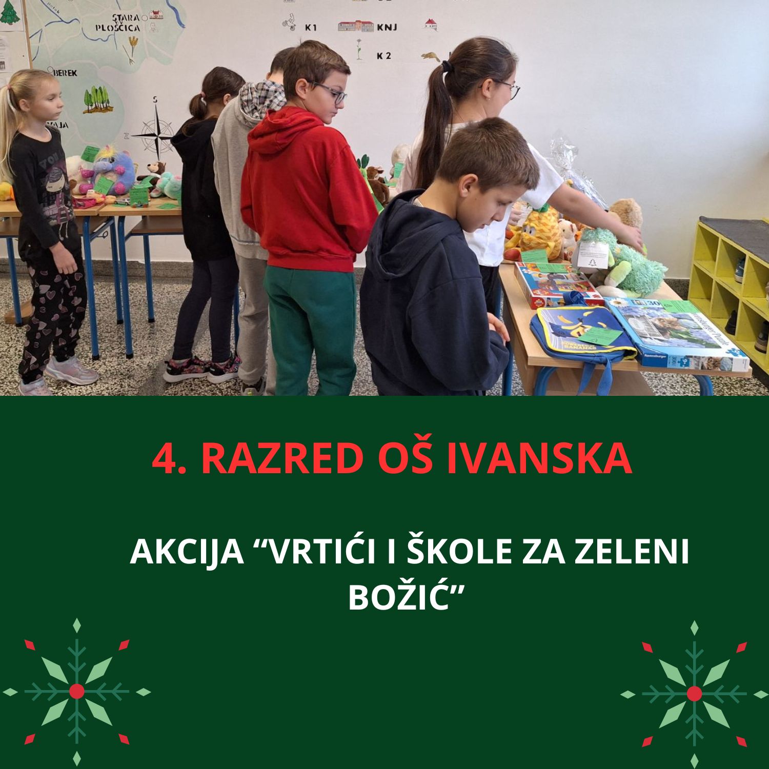 – Uključenošću u ovu hvalevrijednu akcije Udruge „Zeleni klik!“ i mi smo kao škola pridonijeli da osobe s intelektualnim teškoćama dobiju svoje mjesto za učenje, rad i boravak u prirodi. Naši učenici su razmjenom svojih starih igračaka, slikovnica i knjiga pokazali da Božić može biti zelen, održiv i pun ljubavi prema drugima kao i zasadili sjeme dobrote koje će, vjerujemo, uz pomoć Udruge „Zeleni klik!“ uskoro procvjetati u Brezovici – poručuju na društvenim mrežama Osnovna škola Ivanska.