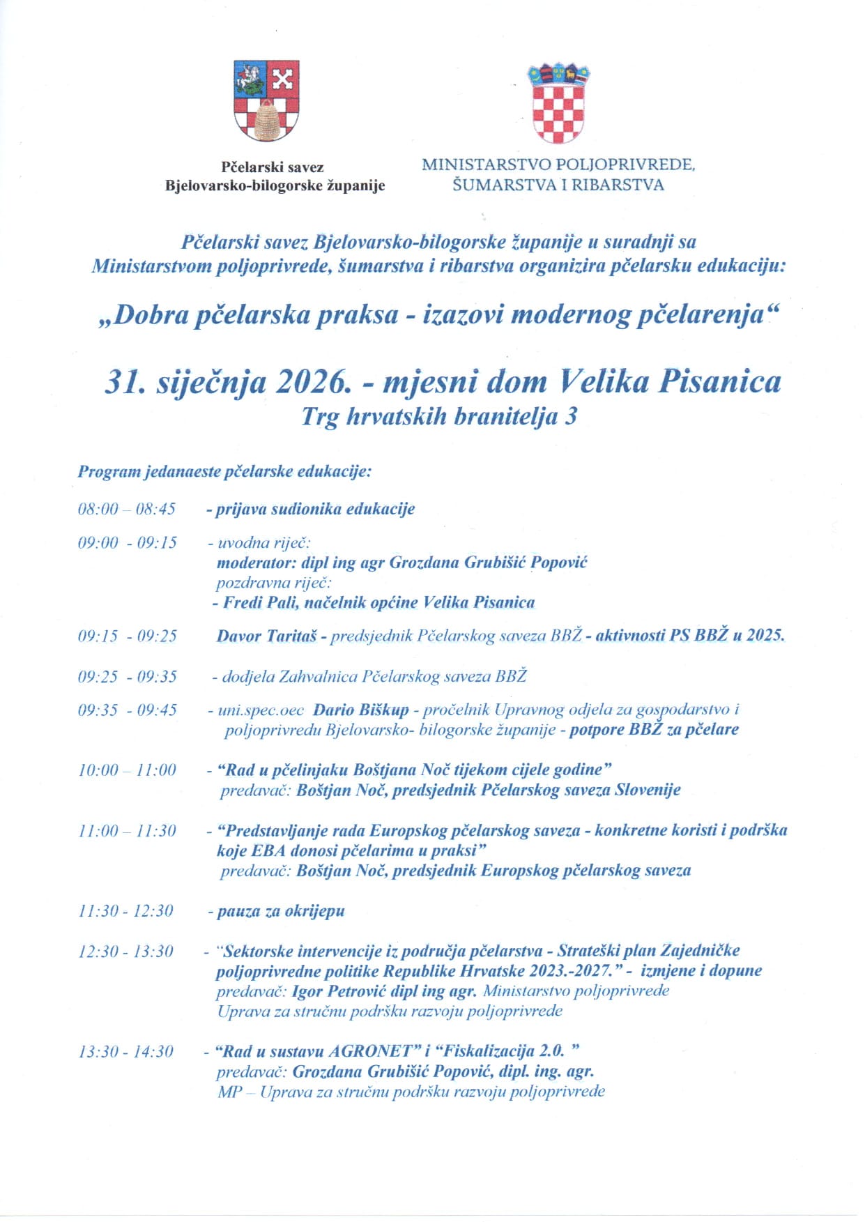 Zimska pčelarska edukacija ove subote 31.01. u mjesnom domu u Velikoj Pisanici počinje u devet sati.