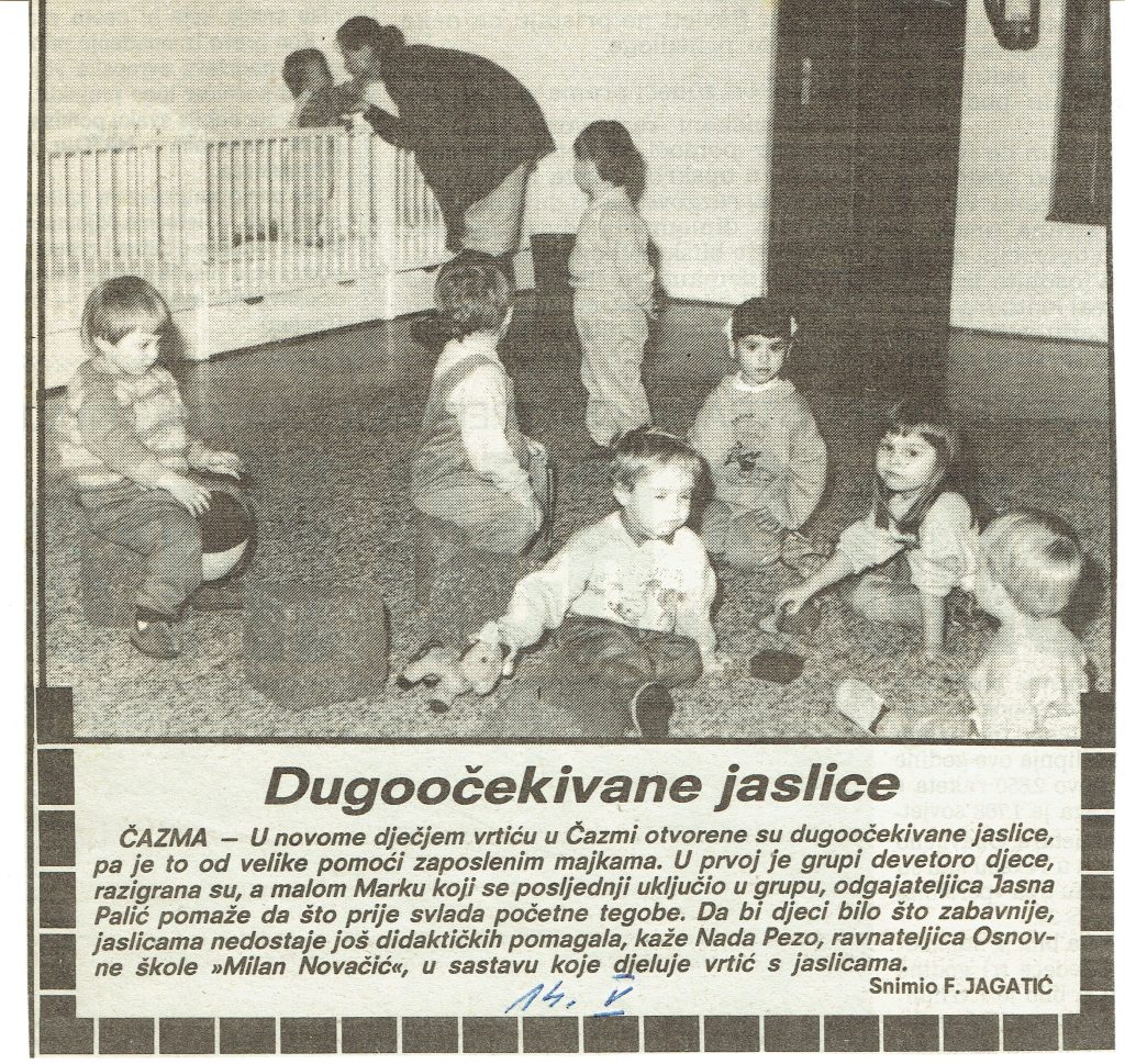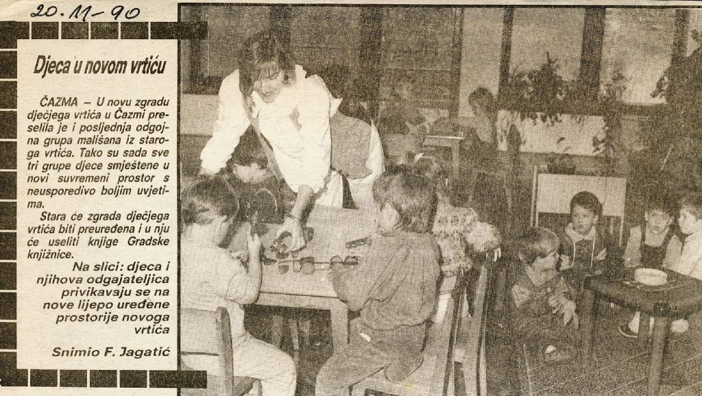Neko vrijeme rad se odvijao na dvije lokacije – u staroj zgradi u Ulici Alojza Vulinca i u novoj u Ulici braće Radića. Djeca su bila podijeljena u pet skupina, a subotom je radila jedna odgojiteljica s petnaestak djece. Organizirana je i „Mala škola“ u Čazmi te u okolnim mjestima – Dapcima, Grabovnici, Lipovčanima i Mikloušu – za djecu koja nisu pohađala vrtić, a pripremala su se za polazak u školu.