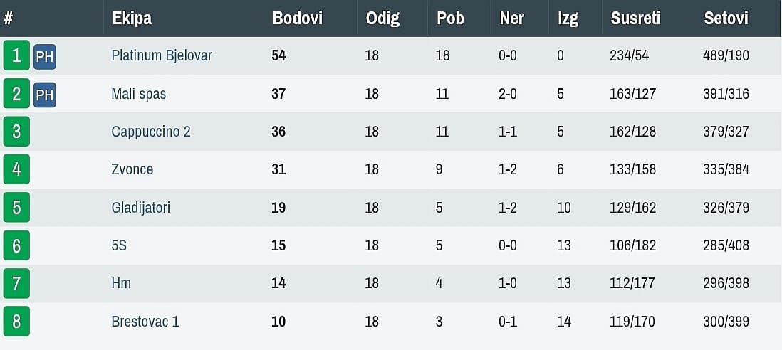 Koliko god se trudio, HM je protiv Malog Spasa pokleknuo pred svojim navijačima. Bilo je 6:10, a ključna je i u ovoj priči bila sada već famozna „igračka širina“. Migač i Mrak ostvarili su 3:1, dok su Sokolović (2:1) te Perković (2:2) samo potvrdili dobru formu „spasitelja“ osiguravši nova dva boda. Shodno navedenom, Šolajinih (3:1), odnosno 2:2 Maletića nije bilo dovoljno za iznenađenje.