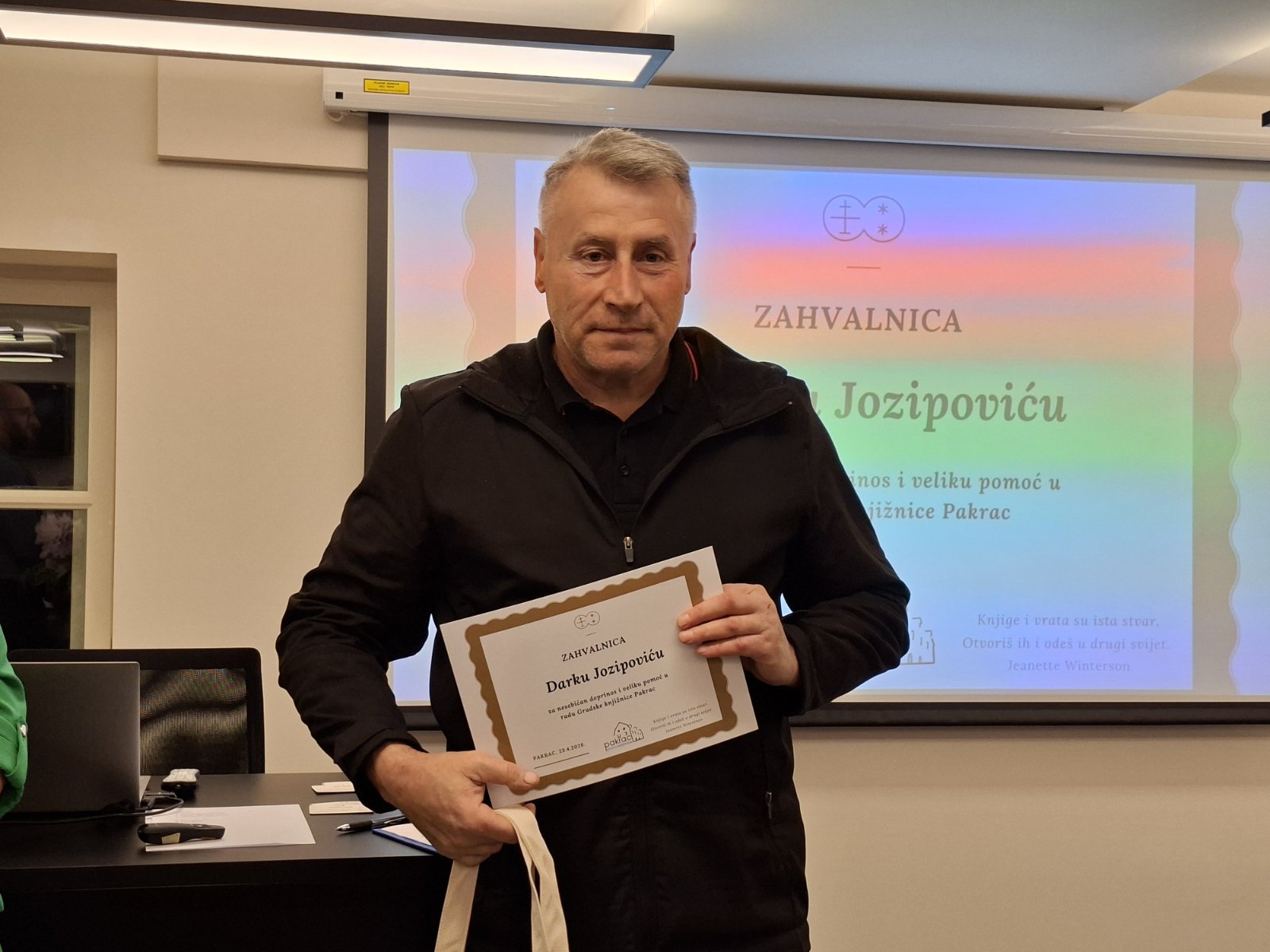 Prisutnima se obratio i pakrački gradonačelnik Tomislav Novinac, koji je pohvalio rad djelatnika knjižnice i istaknuo važnost Spahijskog podruma kao novog kulturnog simbola Pakraca, izrazivši zadovoljstvo što građani aktivno sudjeluju u programima koji obogaćuju društveni život.