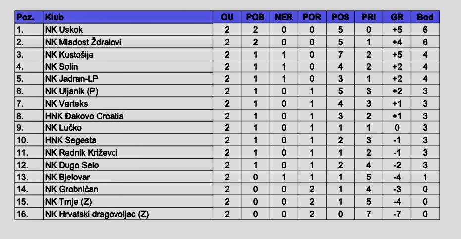 SUPERSPORT DRUGA HRVATSKA NOGOMETNA LIGA – 2. KOLO SEZONE 2025./2026.: