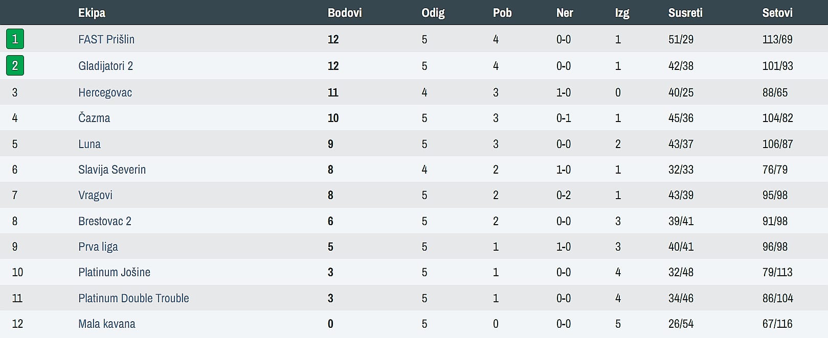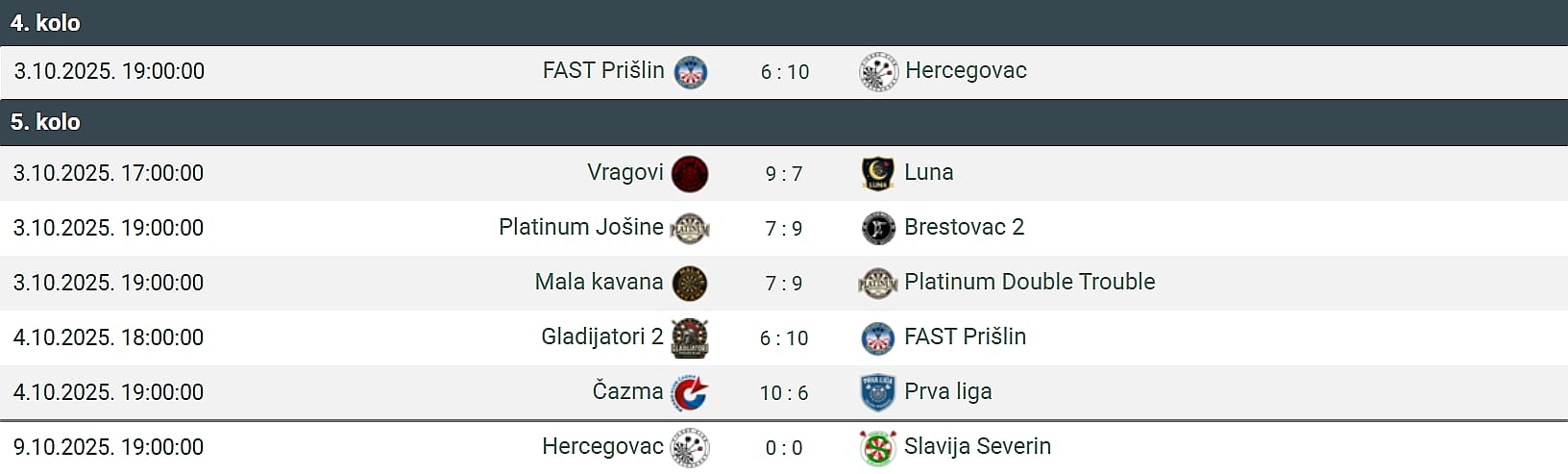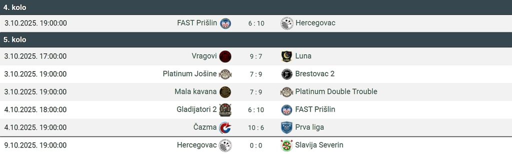 Tako je službeno okončano četvrto kolo, a što se tiče petoga, prije svega valja kazati kako su se istaknuli igrači Hercegovca i Čazme. Upisali su oni uvjerljive pobjede, Vragovi su zaustavili Lunin niz od tri slavodobitna vikenda, a Prišlinovci su tugu do koje je došlo dan ranije isprali nadvisivši do ovoga tjedna neporažene Gladijatore II.