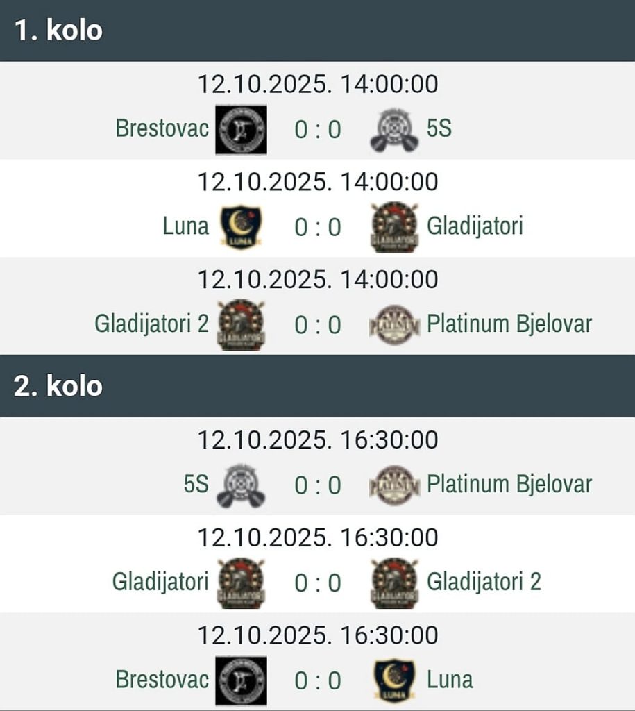 Kako smo već i ranije naveli, FAST Prišlin se protiv Gladijatora II oporavio od gubitka doživljenog dan ranije tako dokazavši da su i gladijatori samo ljudi. Preciznije, da i oni mogu izgubiti. Neizvjesna su u ovoj priči bila prva tri kruga – 2:2, 4:4 pa 6:6. Stoga, odluka je pala u zadnjem, četvrtom gdje Prišlinovci nižu četiri pobjede i dolaze do konačnih 6:10. Miroslav Puškaš i Dejan Lukavečki bili su glavni aduti s po 3:1, dok se za preostale bodove pobrinuo dvojac Marin Tomaško/Siniša Megerle. Prvonavedeni je ostvario 2:1, dok se drugonavedeni može pohvaliti s 1:0. Kod Gladijatora, Marko Padović i Goran Jandroković završili su s omjerom 2:2.