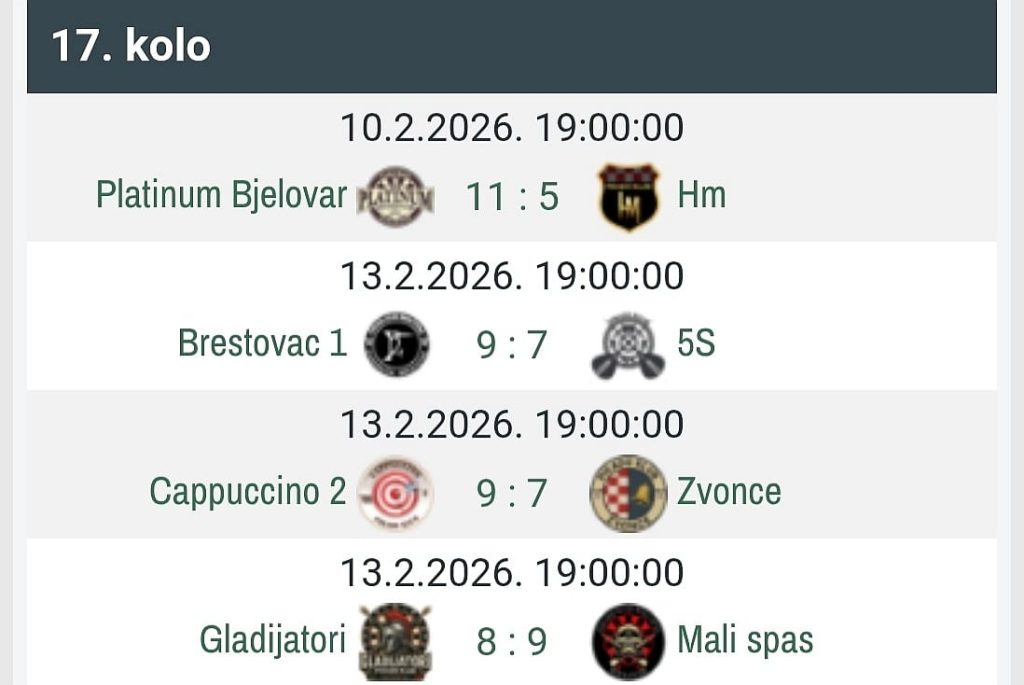 Sedamnaesto kolo Druge pikado lige Pikado saveza Bjelovarsko-bilogorske županije (sezona 2025./2026.), a koje je odigrano kroz nekoliko dana donijelo je mnoštvo novih uzbuđenja. U prilog ovom navodu ide činjenica što su se pojedini mečevi odlučivali u samoj završnici, kako bi se reklo, bilo je „na jednu partiju“. Još kraće rečeno, četiri susreta, dva krajnja ishoda 9:7 te jedan preokret. Dakle, liga je konstantno u visokom, napetom ritmu (kako se moglo i očekivati), igrači se bore za svaki bod, a mi vam u nastavku teksta donosimo sve pojedinosti……