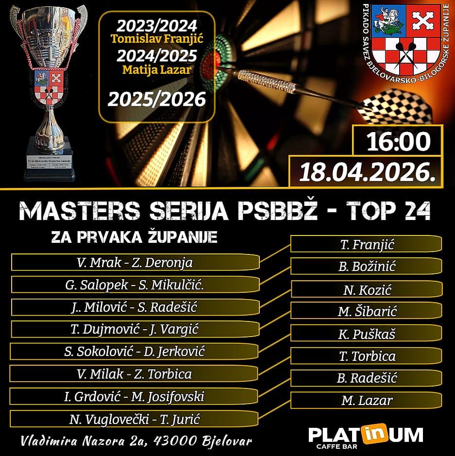 Pikado nam minuloga vikenda nije donio samo 17. kolo Druge lige Bjelovarsko-bilogorskog Pikado saveza. Naime, održan je i četvrti po redu Masters u sezoni 2025./2026., a na kojemu su svoju preciznost prezentirala 53 pojedinačna igrača te 21 par. Navedeno je garantiralo nova uzbuđenja do kojih je i došlo. Dan je bio ispunjen mnoštvom vrhunskih mečeva pa su svi posjetitelji mogli itekako uživati. U bjelovarskom caffe baru Platinum sve je odisalo pozitivnim sportskim rivalitetom s tim što je priča otvorena pojedinačnom konkurencijom.