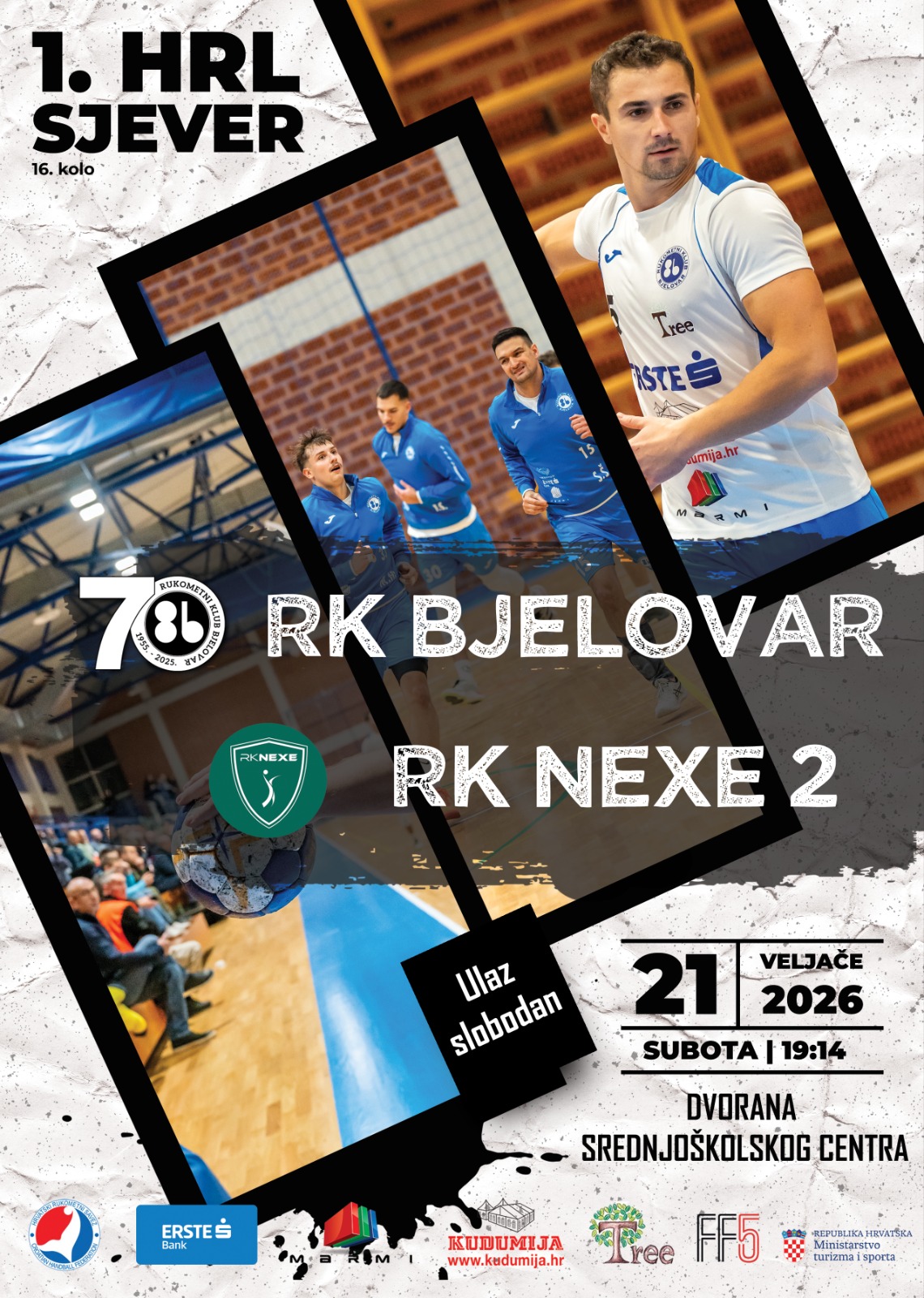 Teško izborenim, ali super vrijednim bodom u Sisku, rukometaši Bjelovara prošloga su tjedna ostali „živi“. Ostali su izabranici Slavka Goluže u borbi za najviša mjesta 1. hrvatske rukometne lige Sjever (drugi rang natjecanja), a ako hoćete još preciznije, naši „Kesizupci“ se nakon sisačkih 26:26 itekako mogu nadati toliko željenom povratku u najviši razred hrvatskog muškog rukometa – „Paket 24 Premijer“ ligu. No, isto tako, pred Bjelovarčanima je još puno posla. Pred njima je još 11 utakmica sezone 2025./2026. s tim što je prva u nizu ona protiv druge momčadi našičkog Nexea. Shodno navedenom, 16. kolo igrat će se ove subote, 21. veljače u dvorani ovdašnjeg srednjoškolskog centra. Početak je zakazan za već dobro poznato bjelovarsko rukometno vrijeme – 19 sati i 14 minuta.