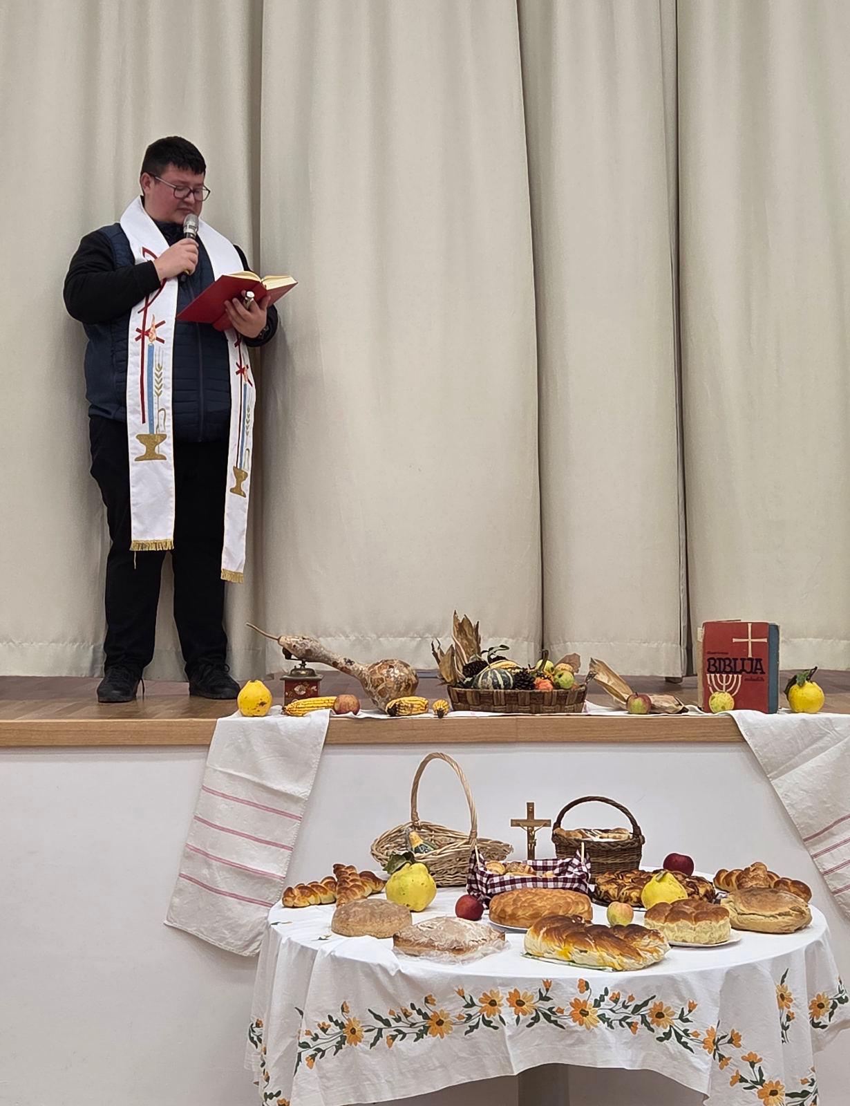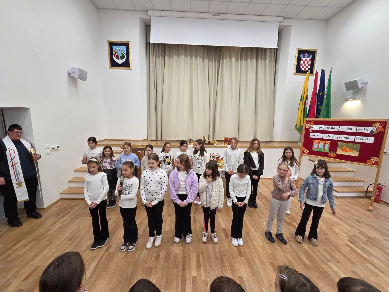 Učenici su, uz podršku svojih učitelja i vjeroučiteljice, pripremili prigodan program ispunjen pjesmom, recitacijama i radosnim trenucima zahvalnosti. Poseban dio svečanosti bio je blagoslov košarica punih mirisnih peciva, kruščića i kolača, koji je predvodio župnik Mislav Dabac.