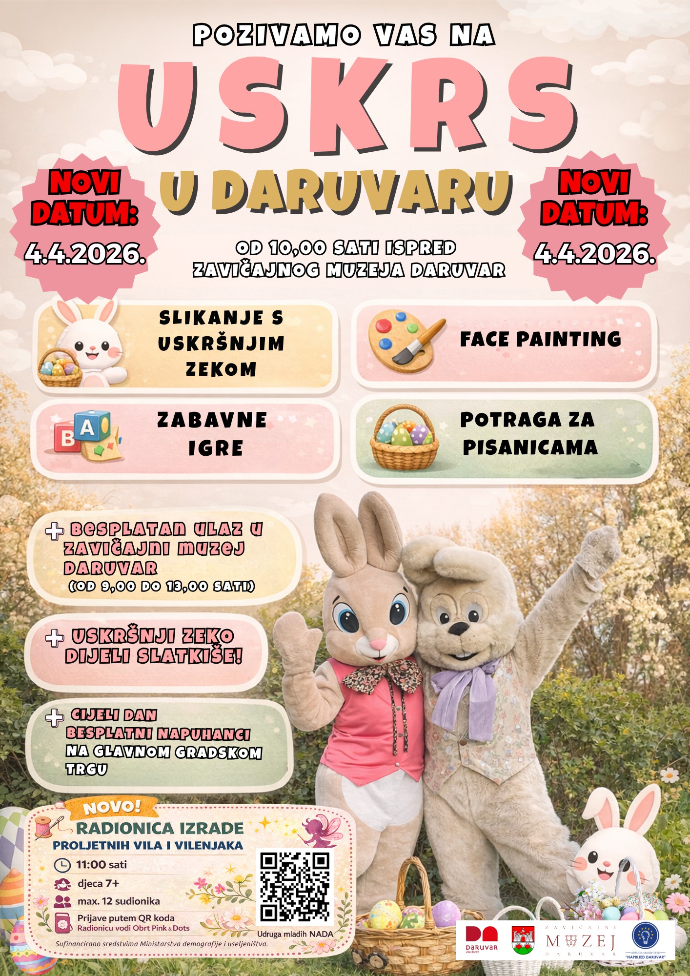 – Slikanje s uskršnjim zekom, facepainting, potraga za pisanicama, brojne zabavne igre, osmišljena su za djecu, dok će roditelji moći besplatno obići Zavičajni muzej za vrijeme manifestacije. Udruga mladih organizirala je i prigodnu radionicu koja je popunjena u tren oka, a najmlađi će moći tijekom dana ići i na besplatne napuhance u centru – kaže Plažanin Vuković